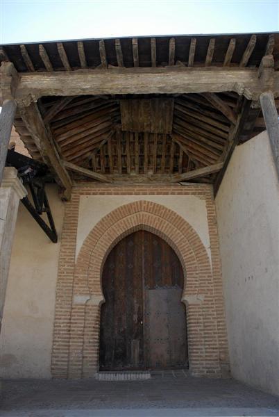 La puerta de entrada tiene un arco de herradura, pero lo más importante es el coro que tiene un antepecho gótico con unas figuras caladas.